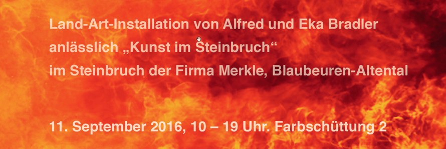 Alles über unsere große Land-Art-Installation, Farbschüttung 2, im Steinbruch der Firma Merkle, Blaubeuren/Altental anlässlich "Kunst im Steinbruch" 2016.